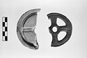 Impressions for upper half of outer ring and one complete spoke preserved.