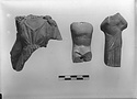 Right arm at shoulder, left arm below elbow. At the back, the upper part of a rectangular firing hole is preserved; the back is made perfectly plain, rounded, but without modeling or drapery. The figure was clad in a high girt chiton, and had locks of hair falling to the shoulders in front.