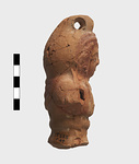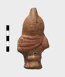| Description: | Draped and hooded figure. On the head a small handle like the handle of a lamp. A loose object inside suggests that the bust was a rattle. Traces of color: eyes and pedestal white; drapery, purple red; face, orange red. | |