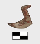 | Description: | Flat-bottomed legless bird with long beak and fan tail. Red stripes across neck and chest, along beak, and top of head, and along sides. St. Andrew 's cross on back, the tail end filled in solid and incised to show feathers; round incised eyes. Red glaze. Gray clay. | |
