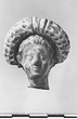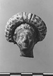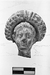 | Description: | First intepretation: woman 's head. Broken off at neck. Heavy halo-like wreath around head. Traces of white and pink paint on the wreath. | |