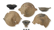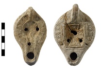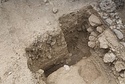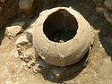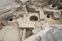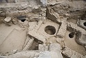 In Section ΒΖ excavation continued in the north-south road and in the buildings to the east and west of it. A large round tile-floored cistern was removed and revealed a smaller one immediately below, both dating to the 10th century A.D. Fills associated with the bath from the 2nd and 3rd centuries A.D., were excavated, and more of a pebble mosaic floor, Hellenistic in date, was cleared. In deeper layers, a pyre of early Hellenistic date was found. Within the road itself, more of the hydraulic installations were cleared, including a second lead pipe and the drain along the side of the road. East of the road, earlier walls came to light, indicating that the Classical commercial building continued. Two pyres buried beneath the floors of the building were found. More evidence that terracotta figurine production took place in the area were recovered. A remarkable find was a small cooking-pot buried near the Classical commercial building, with the remains of the head and feet of a chicken inside, and lines of lightly-incised letters on the outside.